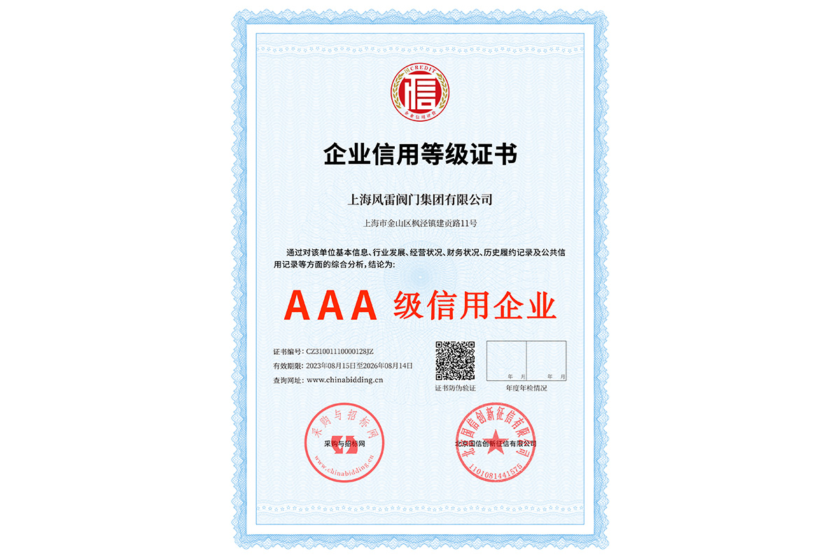 AAA資信等級(jí)證書